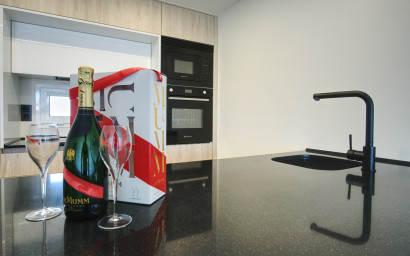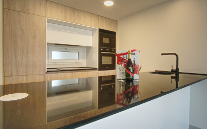De woning beschikt over 2slaapkamers, waarvan 1 en suite bij de hoofdslaapkamer. De woonkamer met een moderne open keuken biedt directe toegang tot de terras.