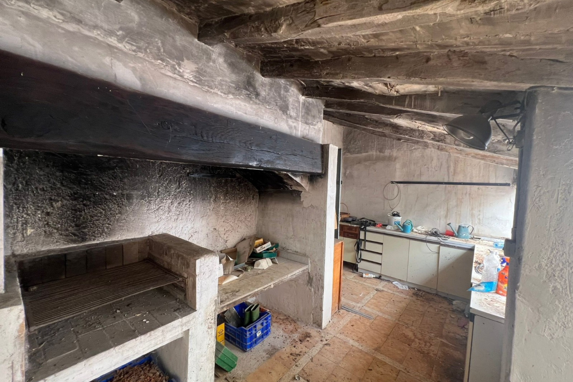 Dit grote landhuis van 290 m² heeft wat liefdevolle zorg nodig, maar heeft veel potentieel. De structuur is goed en het dak van het hoofdgebouw is onlangs gerepareerd nadat er enkele lekken waren ontdekt. Er is een woonkamer met open haard, een aparte keuken (moet worden vervangen), 3 grote slaapkamers en 1 badkamer. Er is ook een binnenplaats, momenteel bedekt met een soort acrylglasplaten (helaas kapot) en gedeeltelijk met een oud pannendak. Dit gedeelte moet worden vernieuwd. De veranda verbindt het hoofdgebouw met een grote multifunctionele ruimte met open haard, die kan worden omgebouwd tot een gastenverblijf of misschien een yogastudio. Deze ruimte heeft een aparte opslagruimte die vroeger een badkamer was, dus deze kan weer worden omgebouwd tot een badkamer.