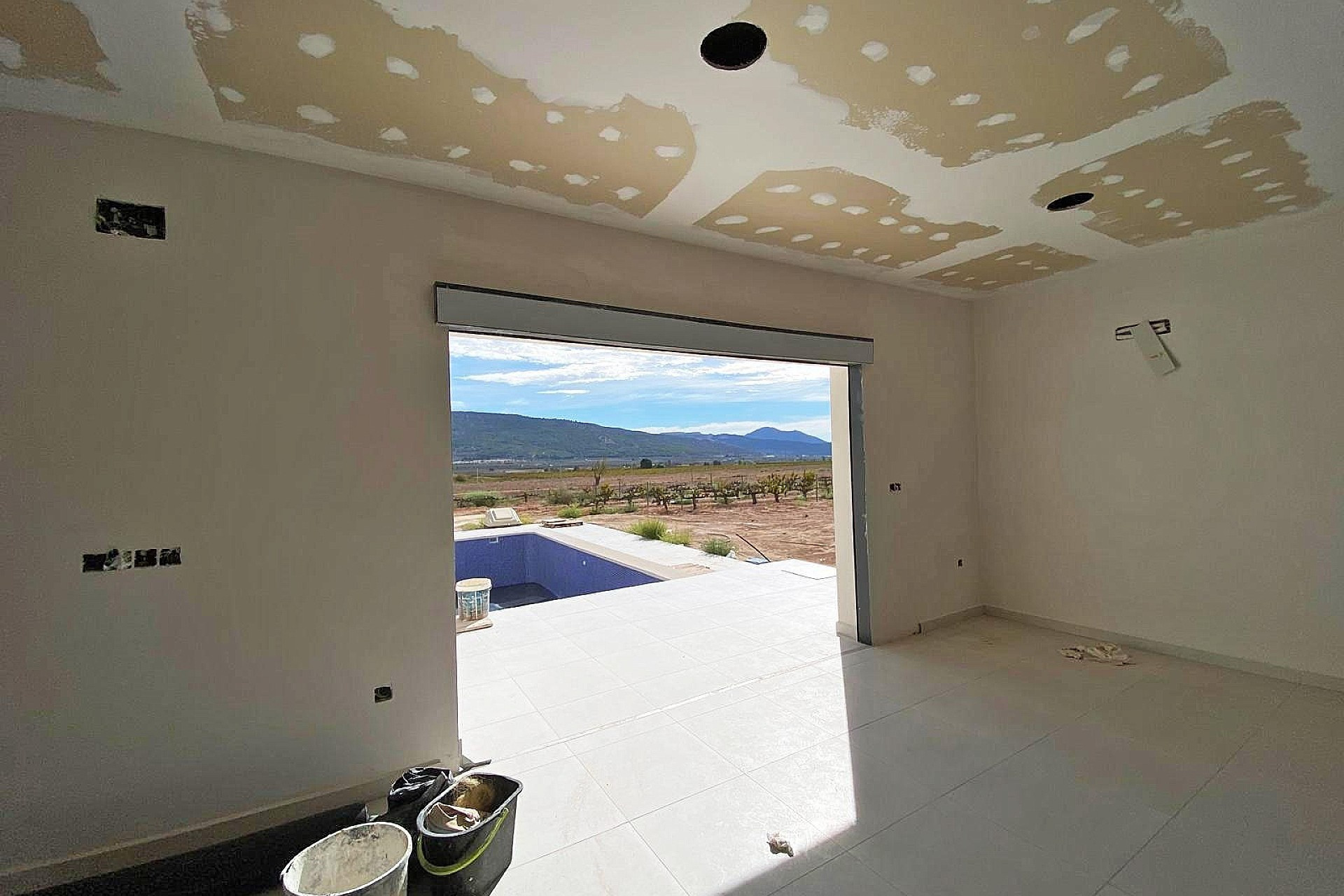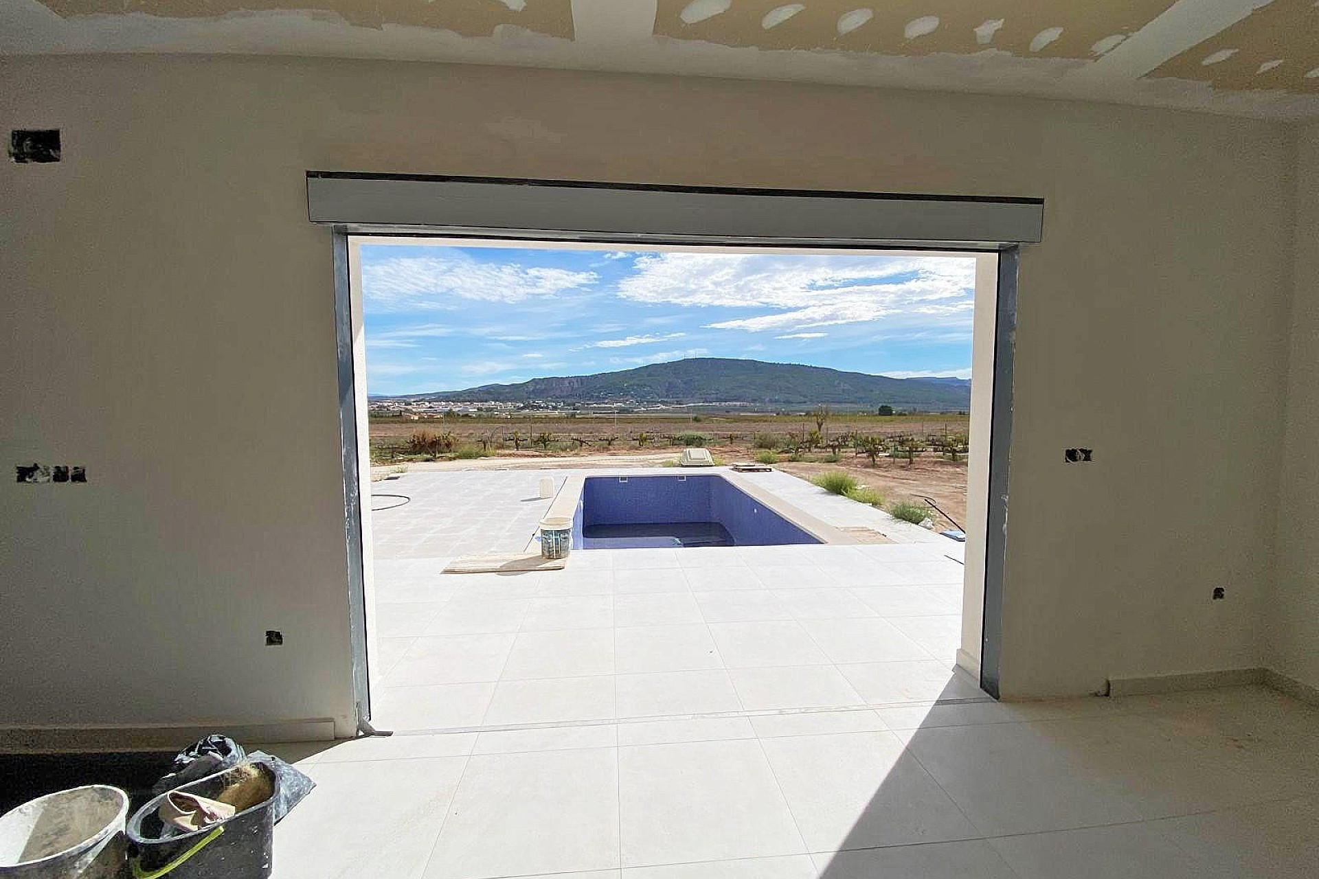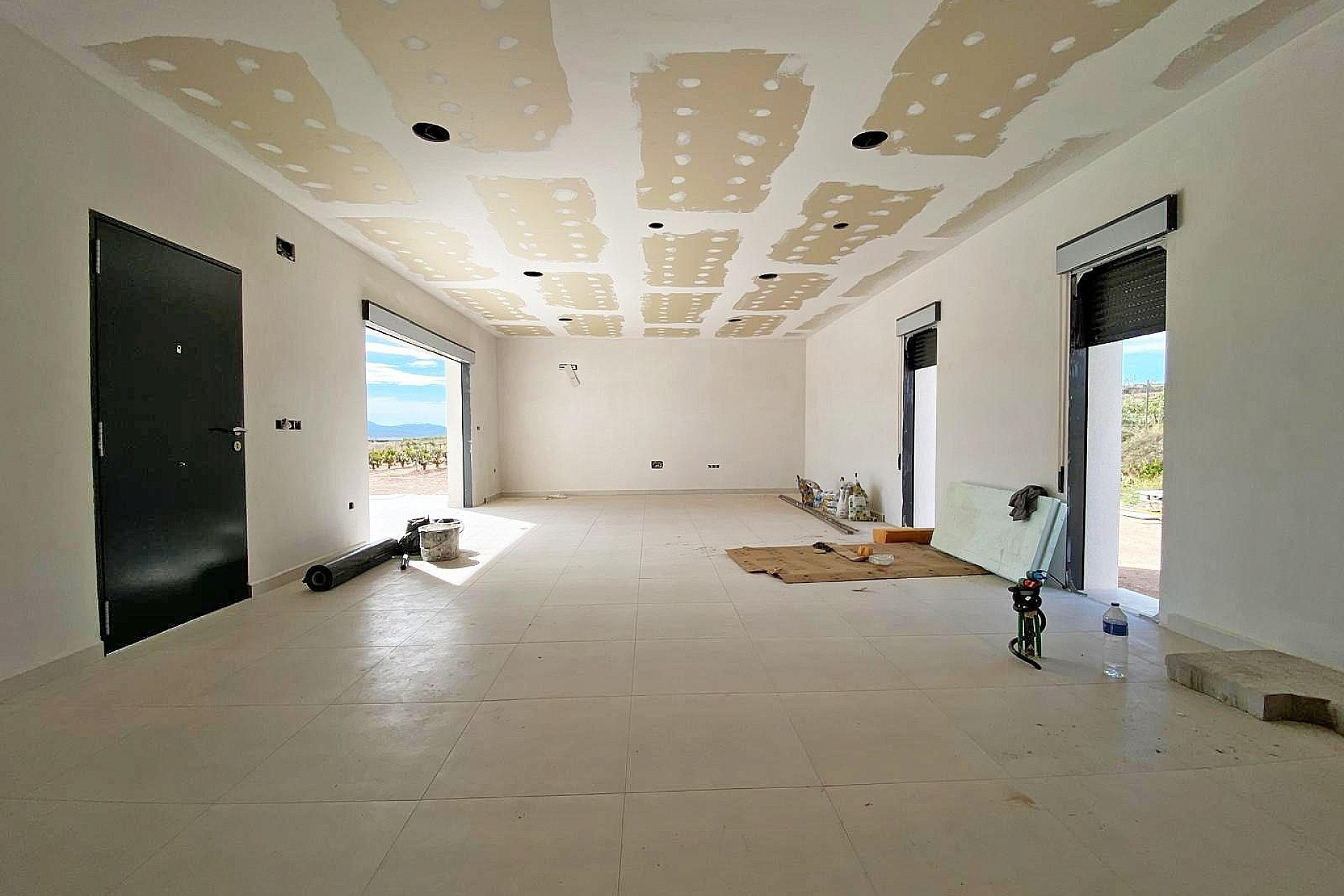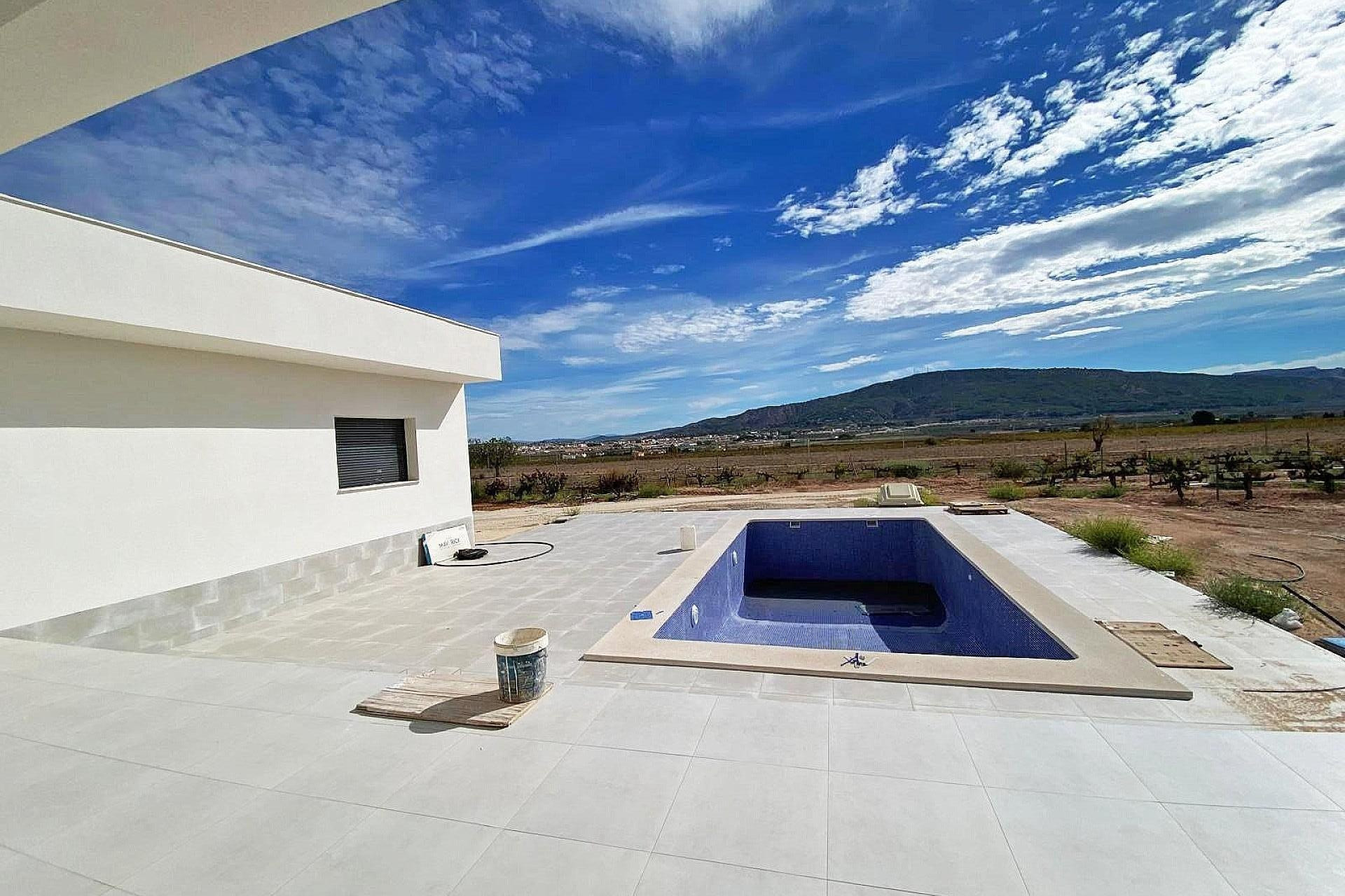 Deze nieuwe villa in moderne stijl nadert zijn voltooiing. De villa is gelegen in Pinoso, op 5 minuten loopafstand waar je alle voorzieningen vindt.De villa is 160m² groot en bestaat uit een grote woonkamer met salon / eetkamer en ingerichte keuken (voor 3.000) een wasruimte, 3 slaapkamers , 2 van hen met inbouwkasten en 1 slaapkamer met een ensuite badkamer. Er is ook 1 gastenbadkamer. De villa heeft een pre-installatie voor airconditioning in het hele huis (warm/koud), stromend water en elektriciteit. Het perceel is 10.000m² groot, waarvan 3.000m² is omheind. Er is een zwembad van 8x4m met buitendouche. Er is keuze uit verschillende afwerkingen en extra's (keuken, badkamer, enz.). Als je op zoek bent naar nieuwbouw maar geen maanden wilt wachten, dan is deze villa echt iets voor jou.
