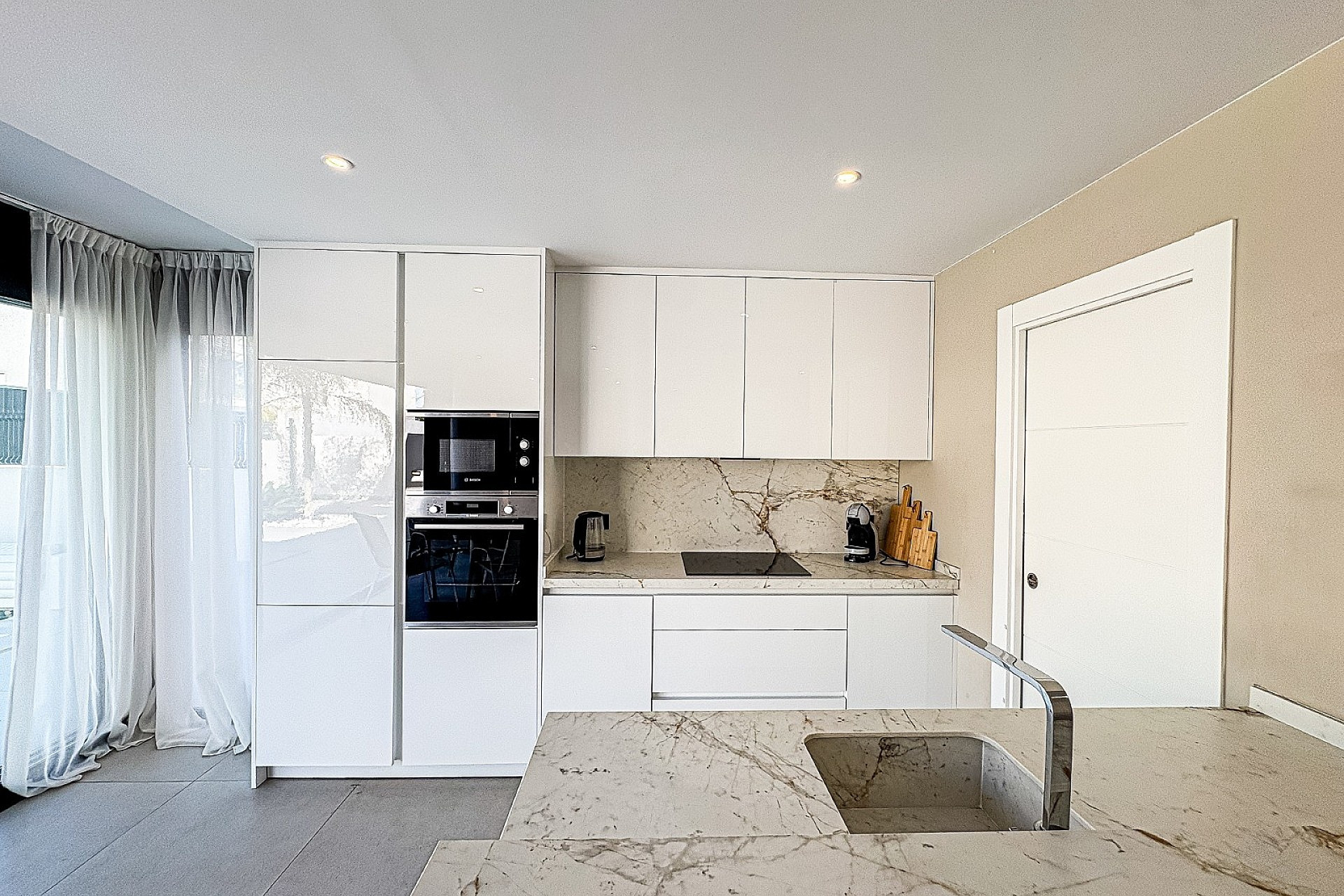 Luxe keuken met Bosch-apparatuur, vaatwasser, koel-vriescombinatie en hoogwaardige werkbladen