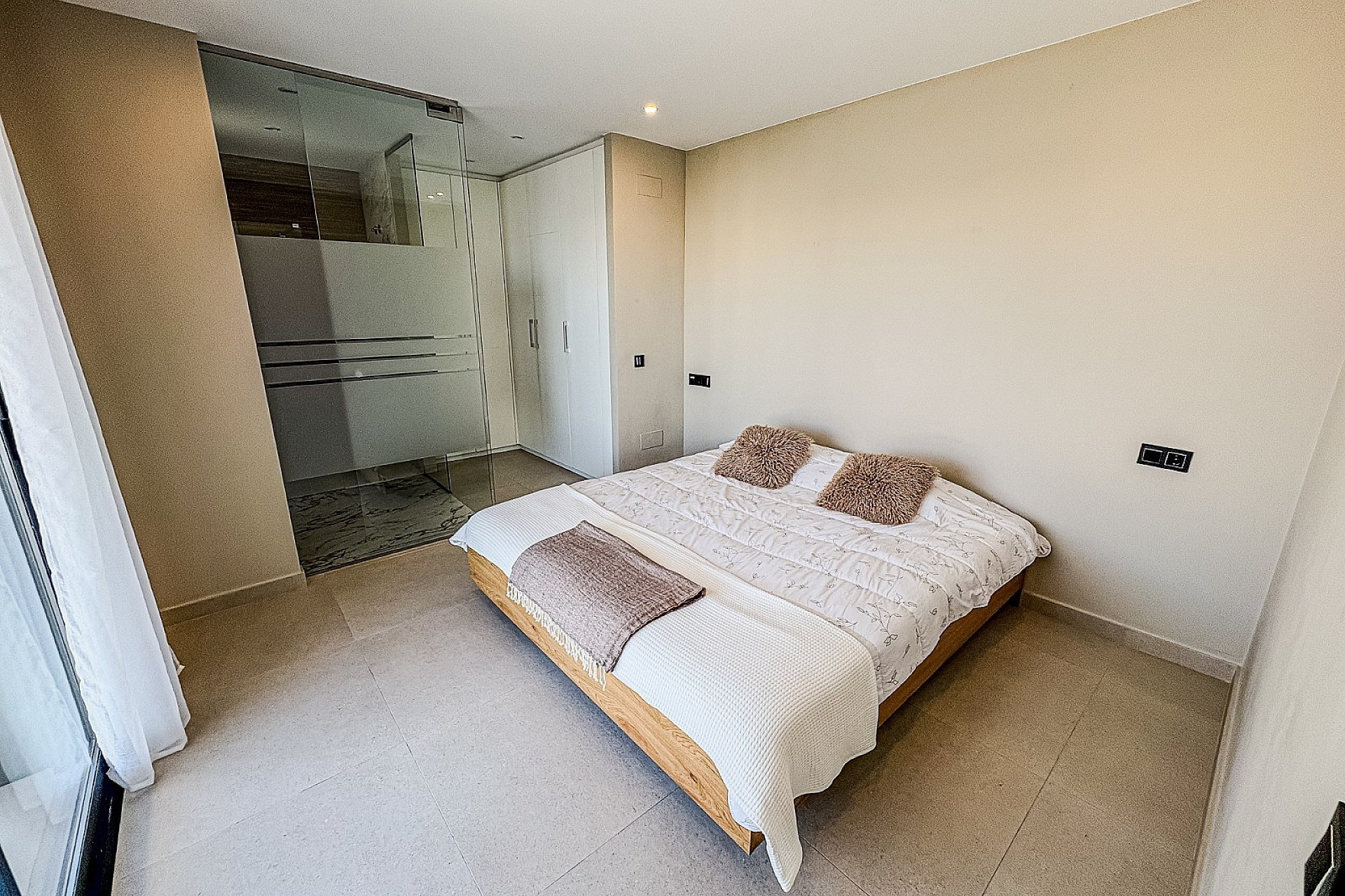 Eerste verdieping: Twee grote slaapkamers, elk met een eigen luxe badkamer. Vanaf deze verdieping heeft u toegang tot een ruim terras waar u in alle rust van de zon en het uitzicht kunt genieten.