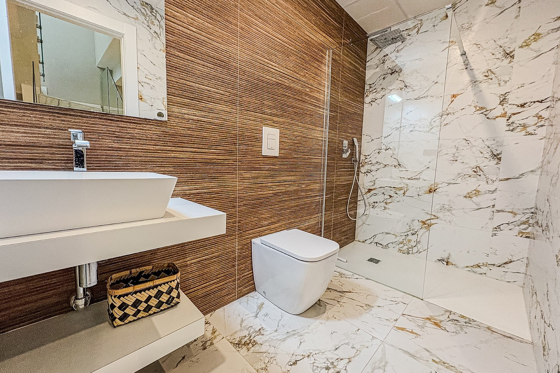 Vloerverwarming in alle badkamers, elk met eigen toilet