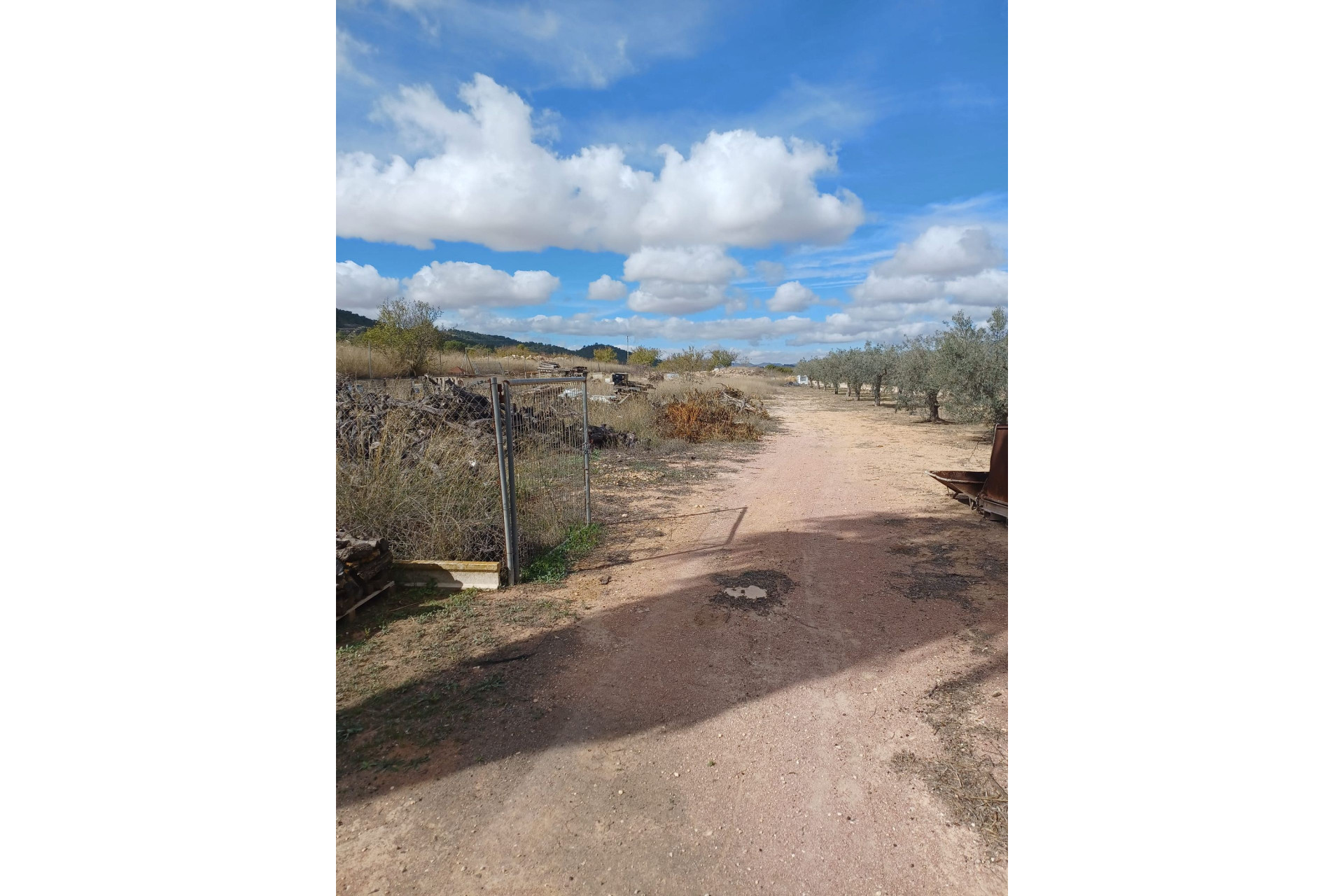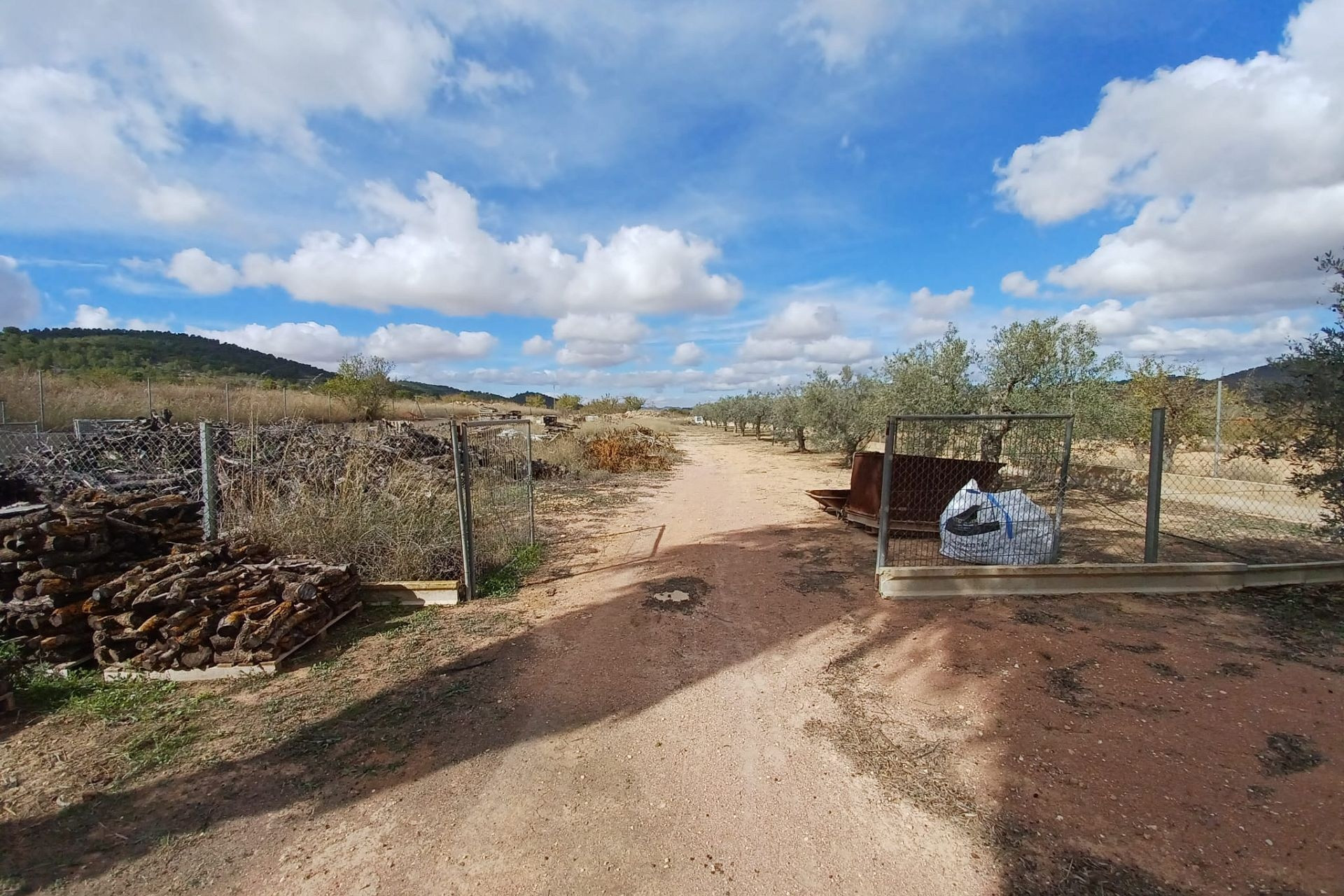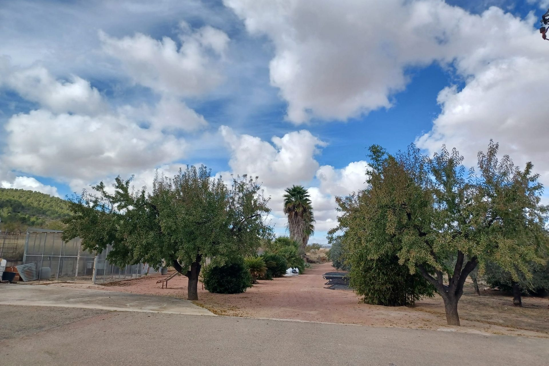 Aan de voor- en achterzijde van het pand bevinden zich verharde terrassen, evenals een poort die toegang geeft tot een moestuin en dierenverblijven. Er staan ook 30 volwassen olijfbomen, samen met een assortiment fruitbomen en palmen. Aan het einde van het perceel bevindt zich een poort die toegang geeft vanaf de andere onverharde weg.