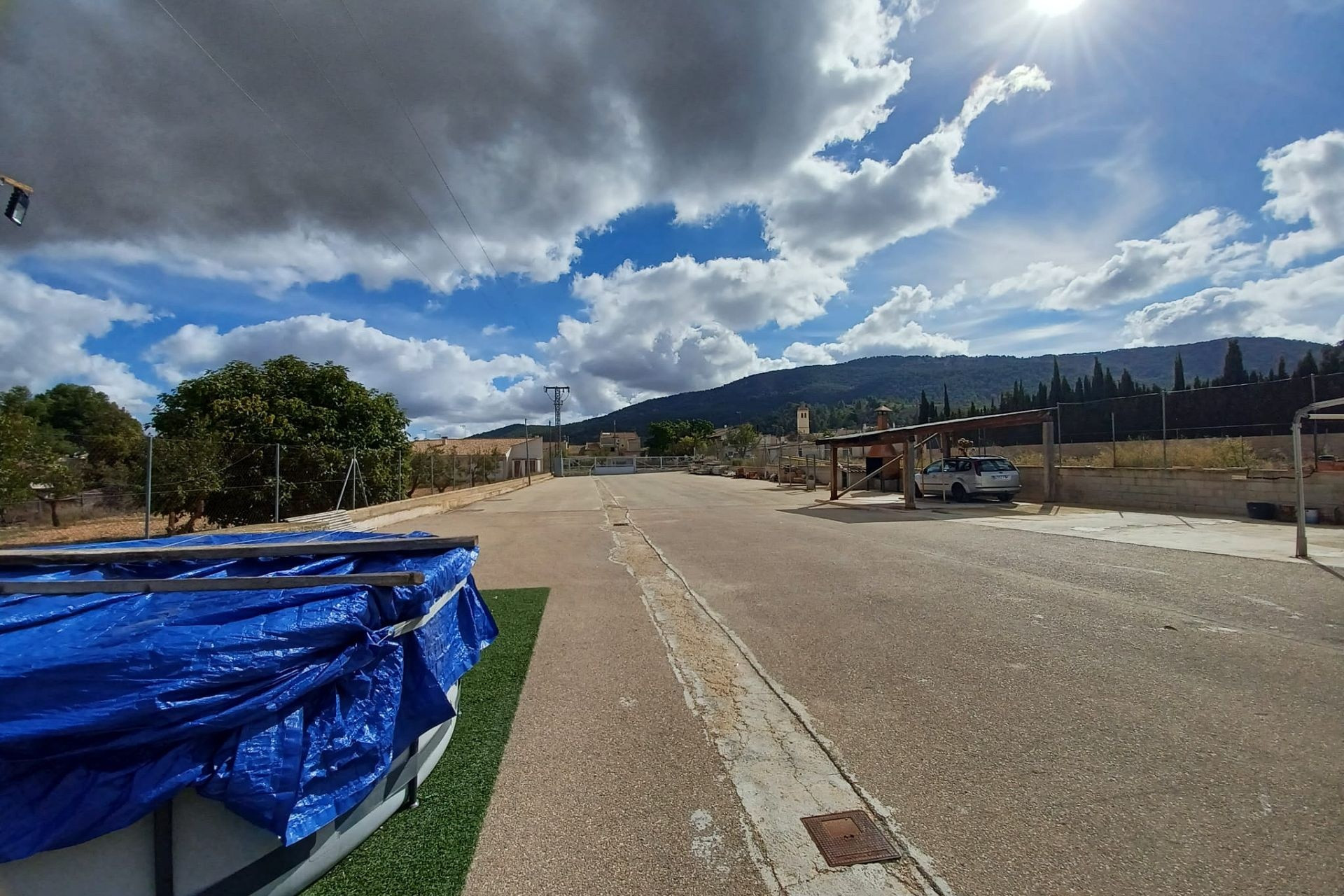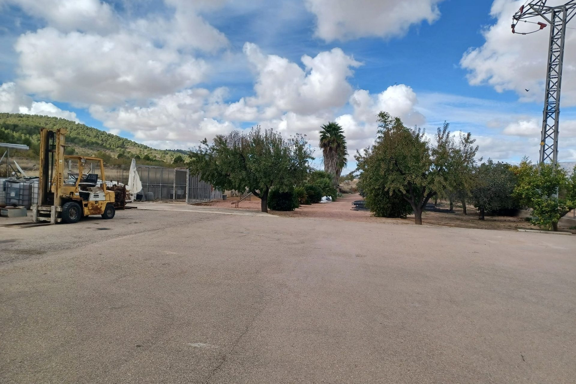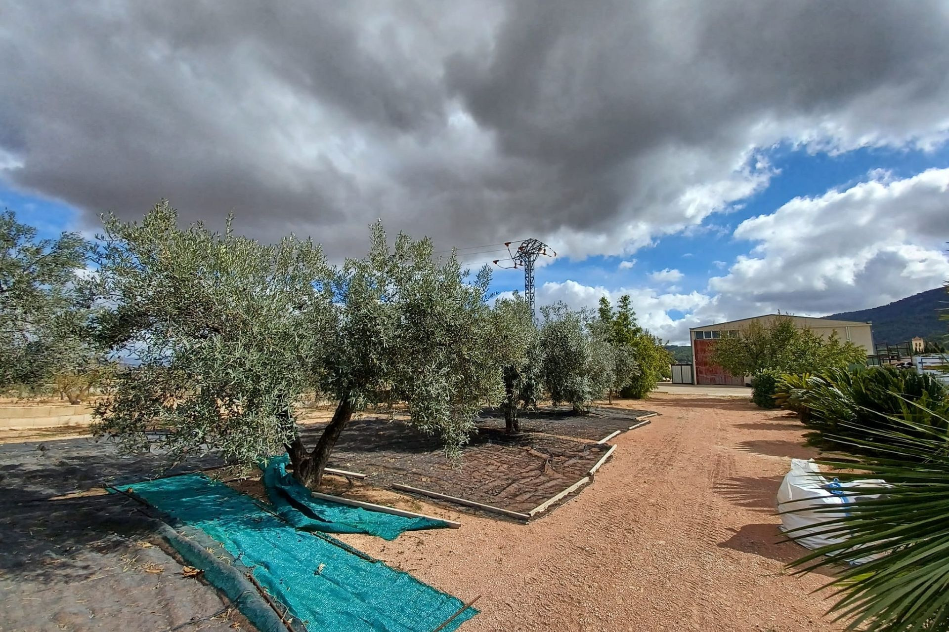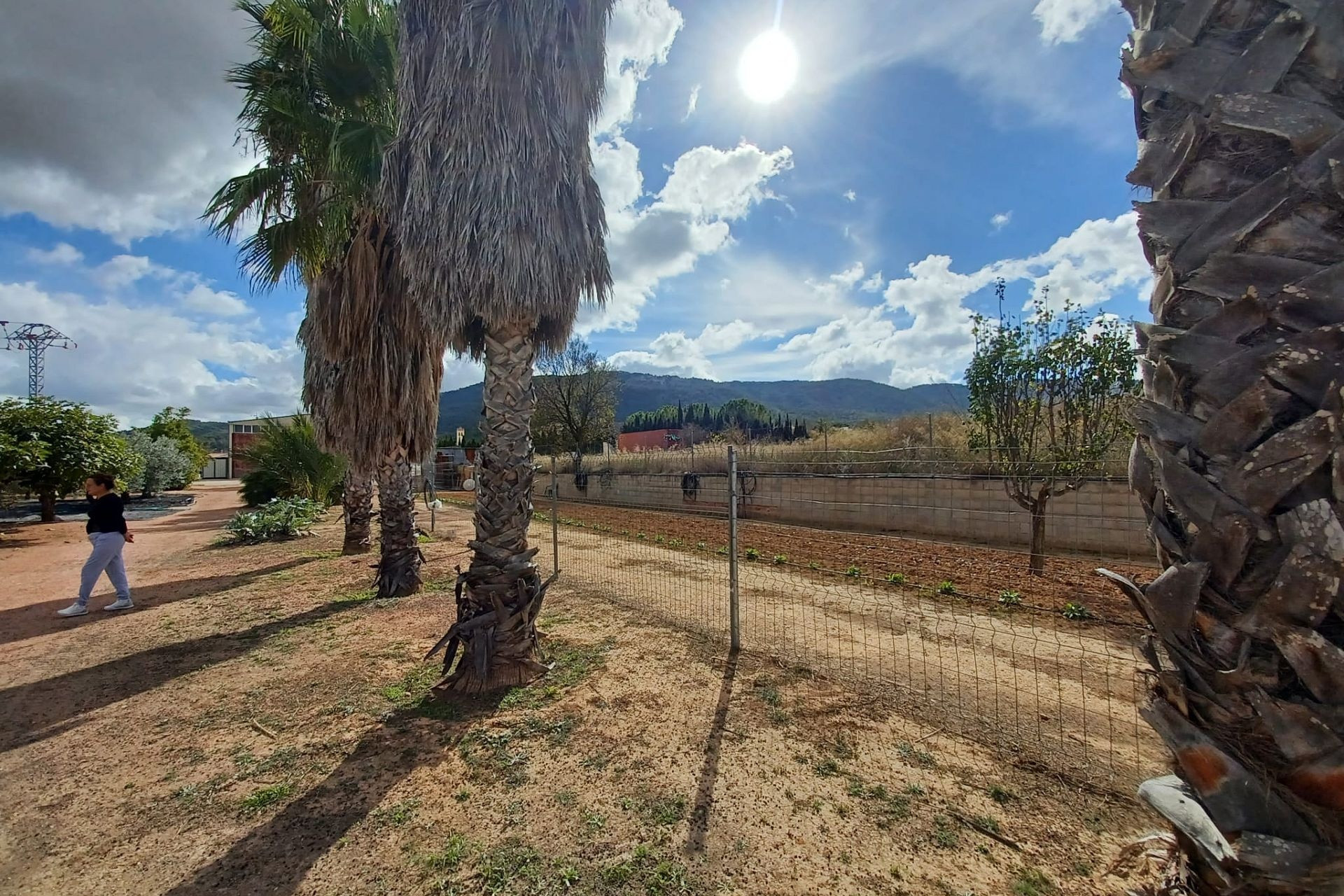 Aan de voor- en achterzijde van het pand bevinden zich verharde terrassen, evenals een poort die toegang geeft tot een moestuin en dierenverblijven. Er staan ook 30 volwassen olijfbomen, samen met een assortiment fruitbomen en palmen. Aan het einde van het perceel bevindt zich een poort die toegang geeft vanaf de andere onverharde weg.
