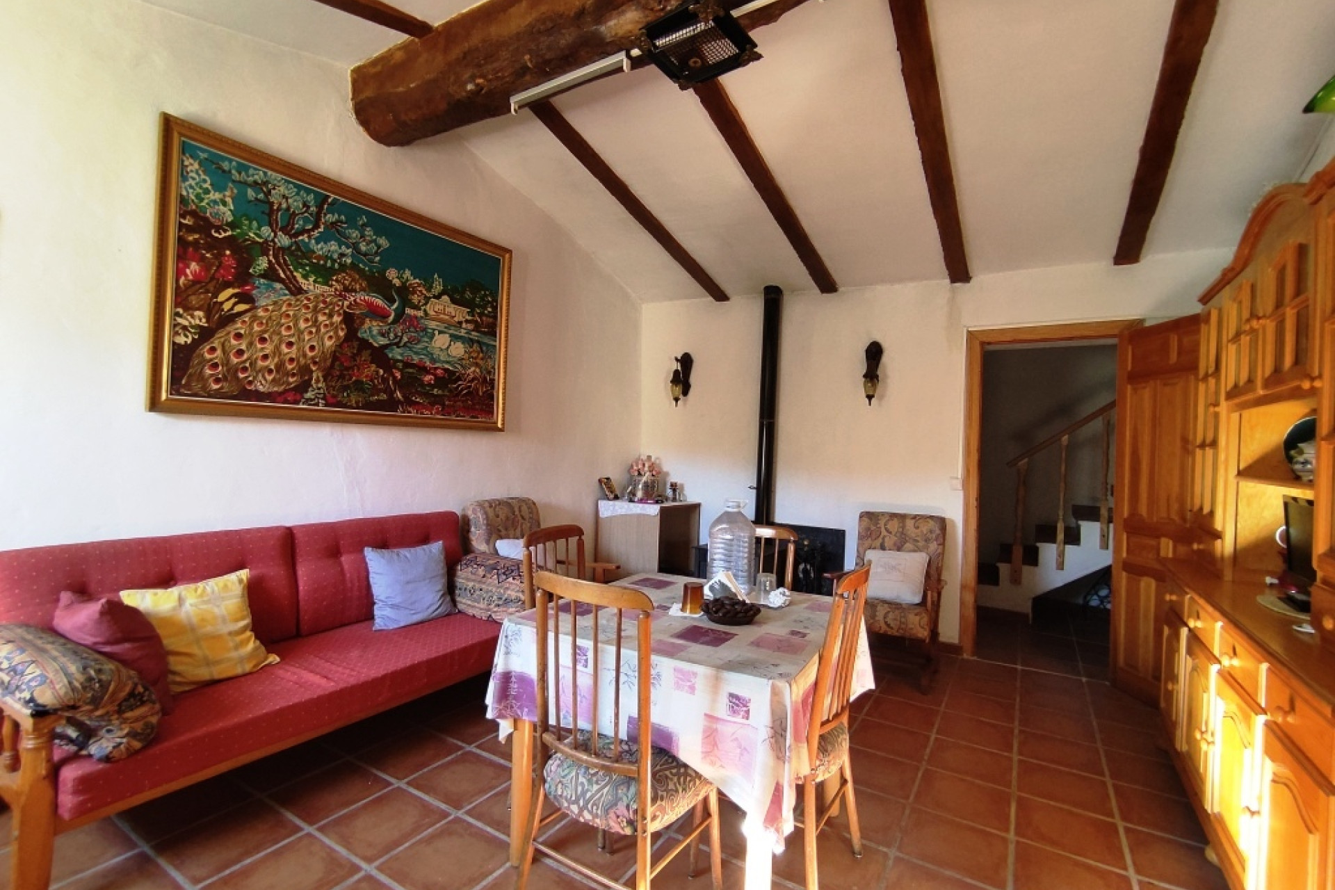 Vlak bij het rustige dorpje Benifallim ligt dit charmante landhuis, omgeven door natuur, zon en schitterende berglandschappen. De ideale plek om te ontspannen en te genieten van rust en privacy.De woning van 64 m² bestaat uit twee slaapkamers, een badkamer, keuken en een eetkamer met houtkachel, wat zorgt voor een warme en gezellige sfeer.Daarnaast is er een ruime garage van 95 m² en een paellero voor heerlijke maaltijden in de buitenlucht. De woning beschikt over basis zonnestroom, houtkachel en tralies voor extra veiligheid.Het perceel is indrukwekkend: maar liefst 3.574 m² met olijf- en amandelbomen, in een zeer rustige en zonnige omgeving, op minder dan 2 km van het dorp via een goede toegangsweg,.De omgeving biedt prachtige natuur, wandelroutes en authentieke dorpjes — ideaal voor wie houdt van rust, natuur en het buitenleven.Een eigendom met karakter, ruimte en veel mogelijkheden.