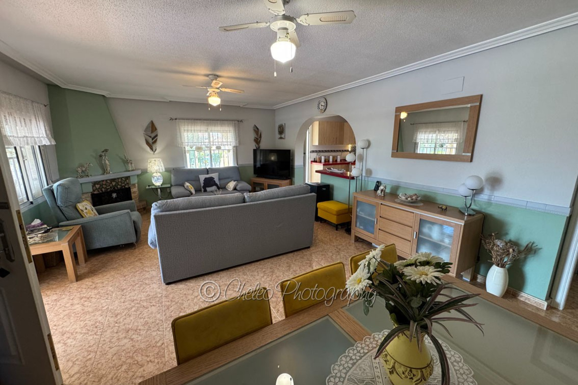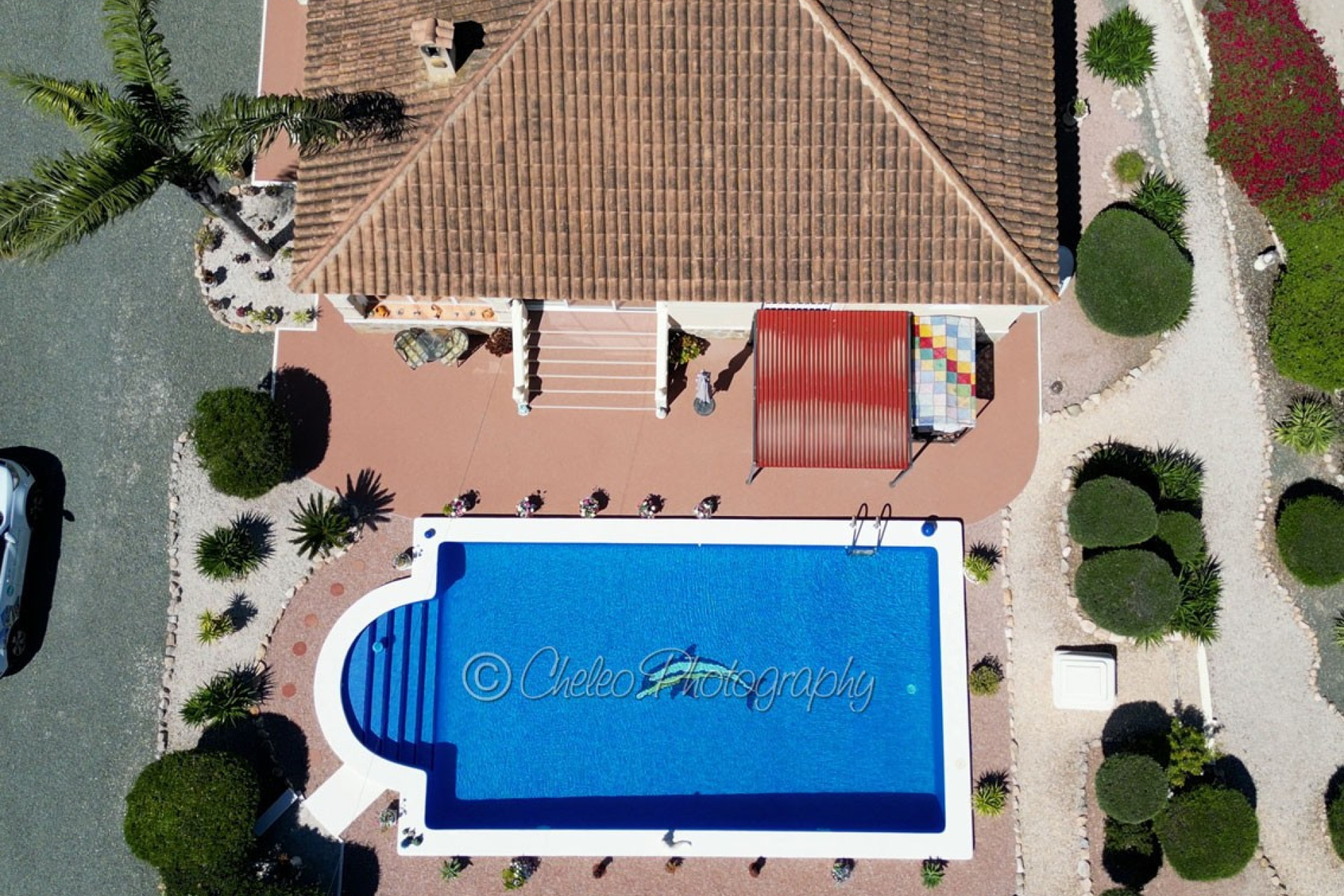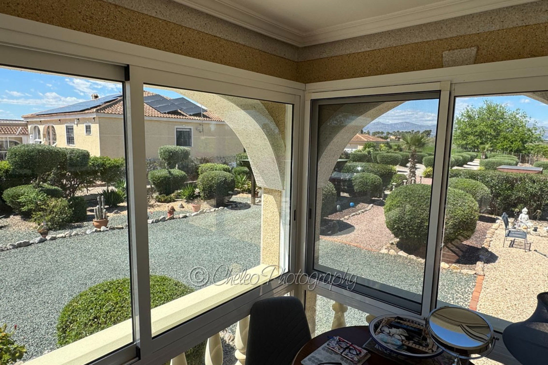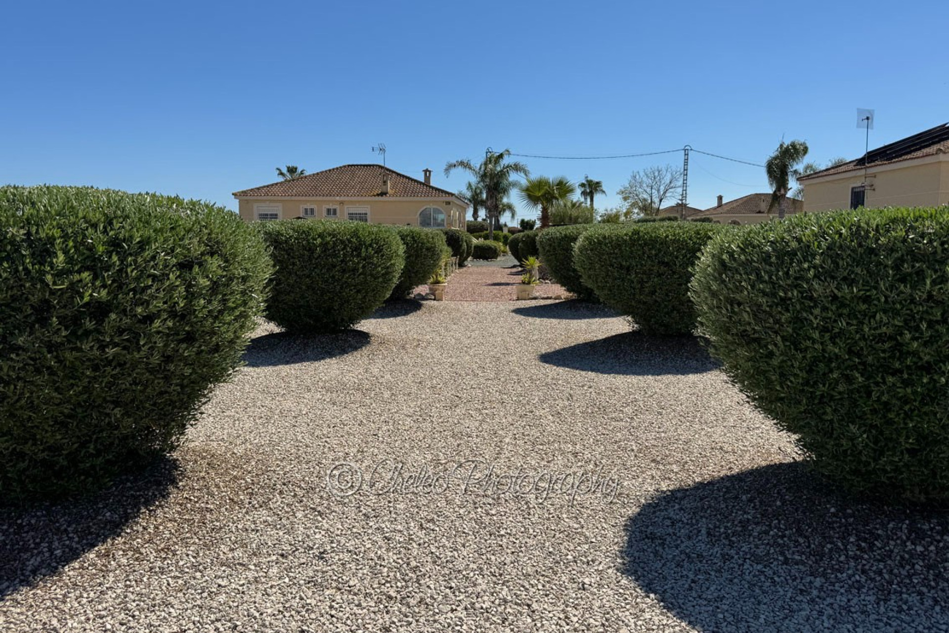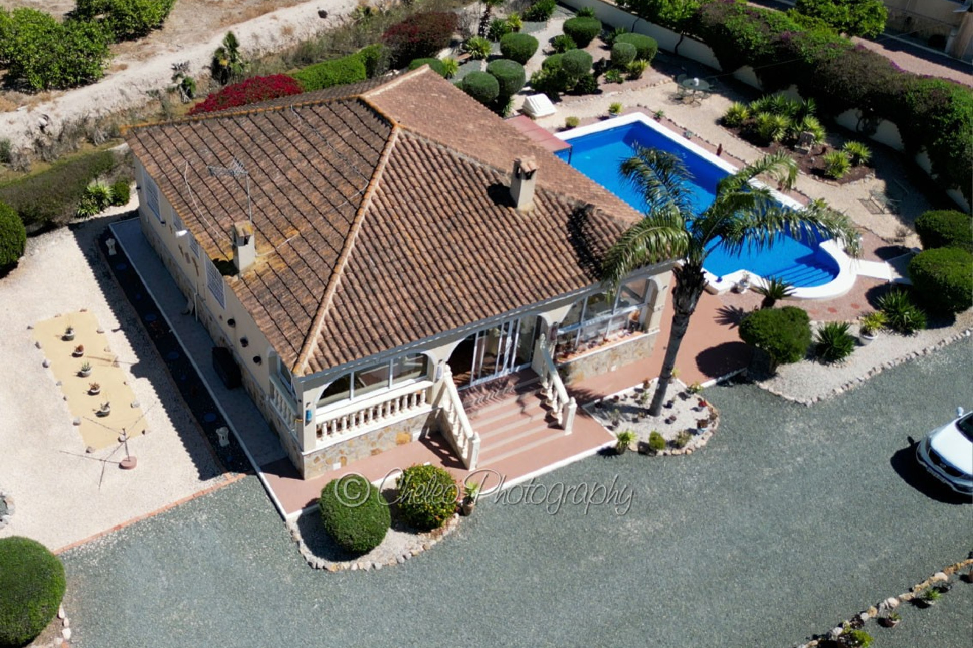The beautiful 140sq meters home consists of a very large living room with wood burning fireplace, 3 double bedrooms with fitted wardrobes, 2 bathrooms ( master bedroom en-suite), modernised fully fitted kitchen with separate utility room, large fully glazed terrace or conservatory with nice views to the swimming pool. The property has a good size 2,310sq meters plot flat and fully fenced with a stunning landscaped garden with many palm and fruit trees and olive trees. The plot has been laid with gravel making a low maintenance plot and there is pergola area and wooden shed and carport for a car. The size of the private swimming pool is 10m x 5m and has a bathing terrace and a pergola area for shade. Other features include mains electricity, mains water, hot/cold air conditioning, ceiling fans, fibre optic internet, satellite dish, pergola, carport, electric gate, outside lights… This fabulous Villa has a beautiful garden with swimming pool and it is located just 15 minutes from the coast. The property is located at the end of a private road so it is a quiet location and 5 minutes drive from Catral. The information provided is intended as a general guide only and does not constitute a comprehensive statement of facts or legal details regarding the properties offered for sale. It is the sole responsibility of the purchaser and their legal representative to verify all details and establish the legal status of any property prior to completion at the notary. For regular updates on similar properties, please follow us on Facebook.