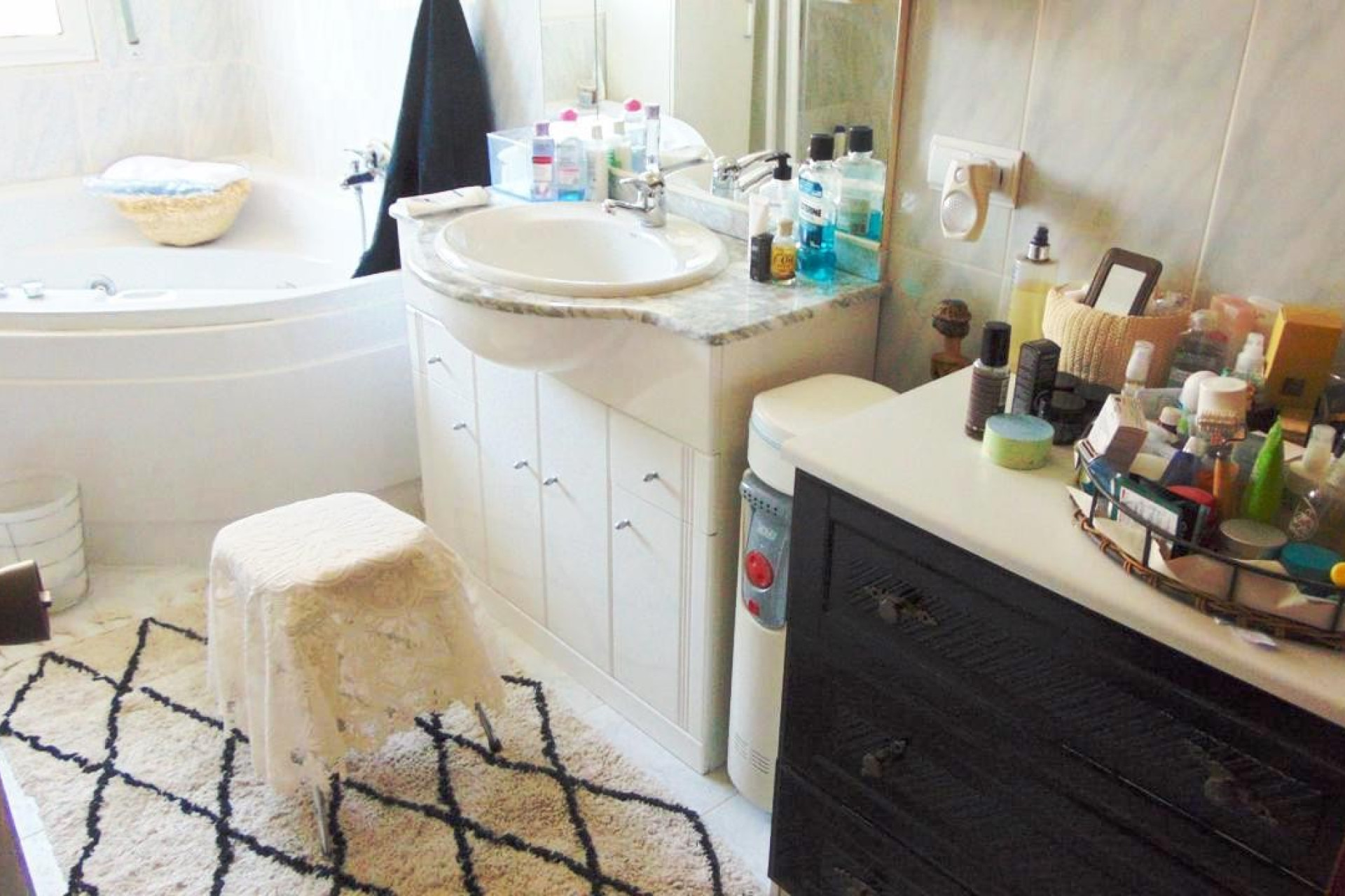 Back to the main entrance hall in the house you go up the stairway to the master bedroom which has air-con installed, fitted wardrobes and a ceiling fan. This room also has an en-suite bathroom with a Jacuzzi bath and a separate cubicle shower.