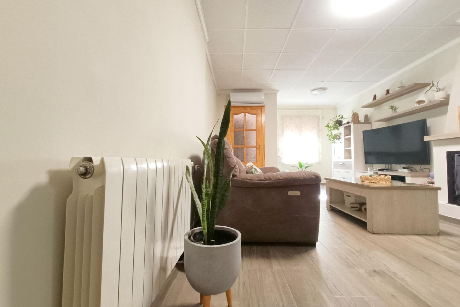 Imagine stepping outside your home and having the bakery, market, bars, and all village services just a few minutes away, without needing a car. This townhouse in the very center offers exactly that: comfort, village life, and space for the whole family. The house is distributed over three floors, combining spaciousness, functionality, and cozy details. On the ground floor, we enter a small entrance hall leading to a large living-dining room with a fireplace and air conditioning, perfect for enjoying both winter and summer. From here, you have access to the kitchen (appliances not included), a convenient laundry room, a patio, a full bathroom, and a bedroom, ideal as a main bedroom on the ground floor, office, or guest room. The entire house benefits from central heating via a diesel boiler and solar panels, providing comfort and efficiency all year round. The second floor features three bedrooms and a full bathroom. One bedroom has access to a private patio, and the bathroom also opens to an outdoor patio, providing natural light and ventilation. On the third floor, there is a loft-style room, currently used as storage, with multiple possibilities. From here, you access the roof solarium, at the very top of the house, with views of the village’s main street and the installed solar panels: a perfect space to relax, sunbathe, or simply enjoy the village atmosphere from above. A charming home, well laid out, with all modern comforts and all services within reach, perfect for those seeking the authentic lifestyle of Hondón de los Frailes.