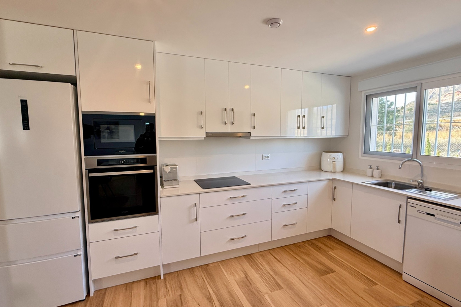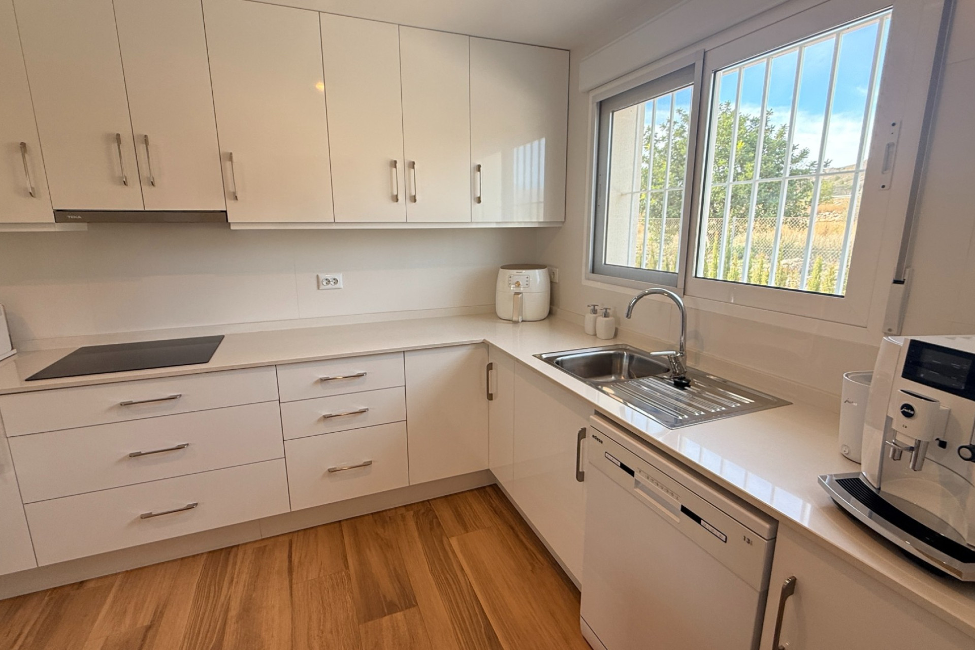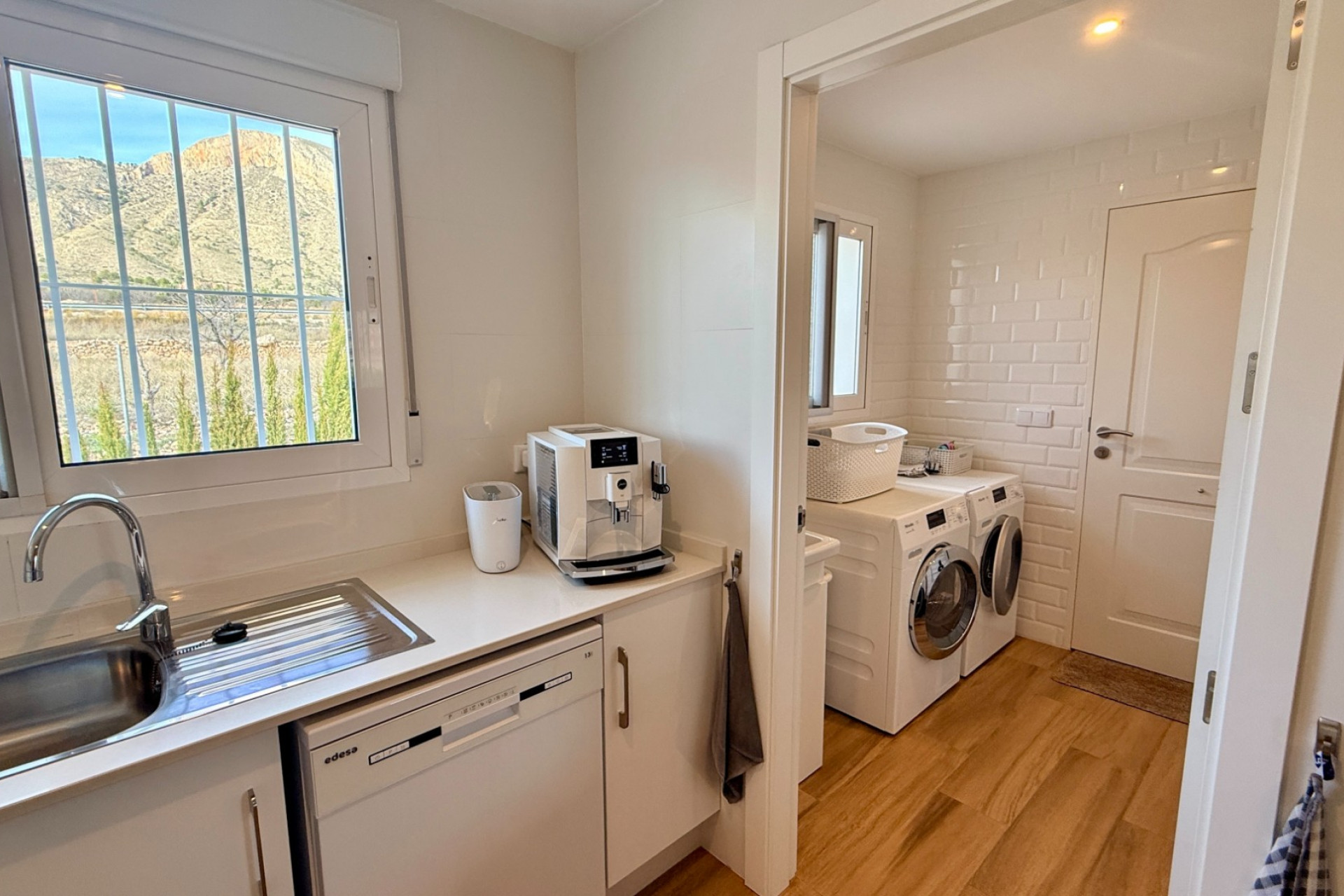 Built in 2022 and presented in as-new condition, this modern villa sits on a fully fenced 5,500m² plot, overlooking terraced almond groves and the rolling, forested hills of Murcia. Privacy, light and comfort are the defining features here.
