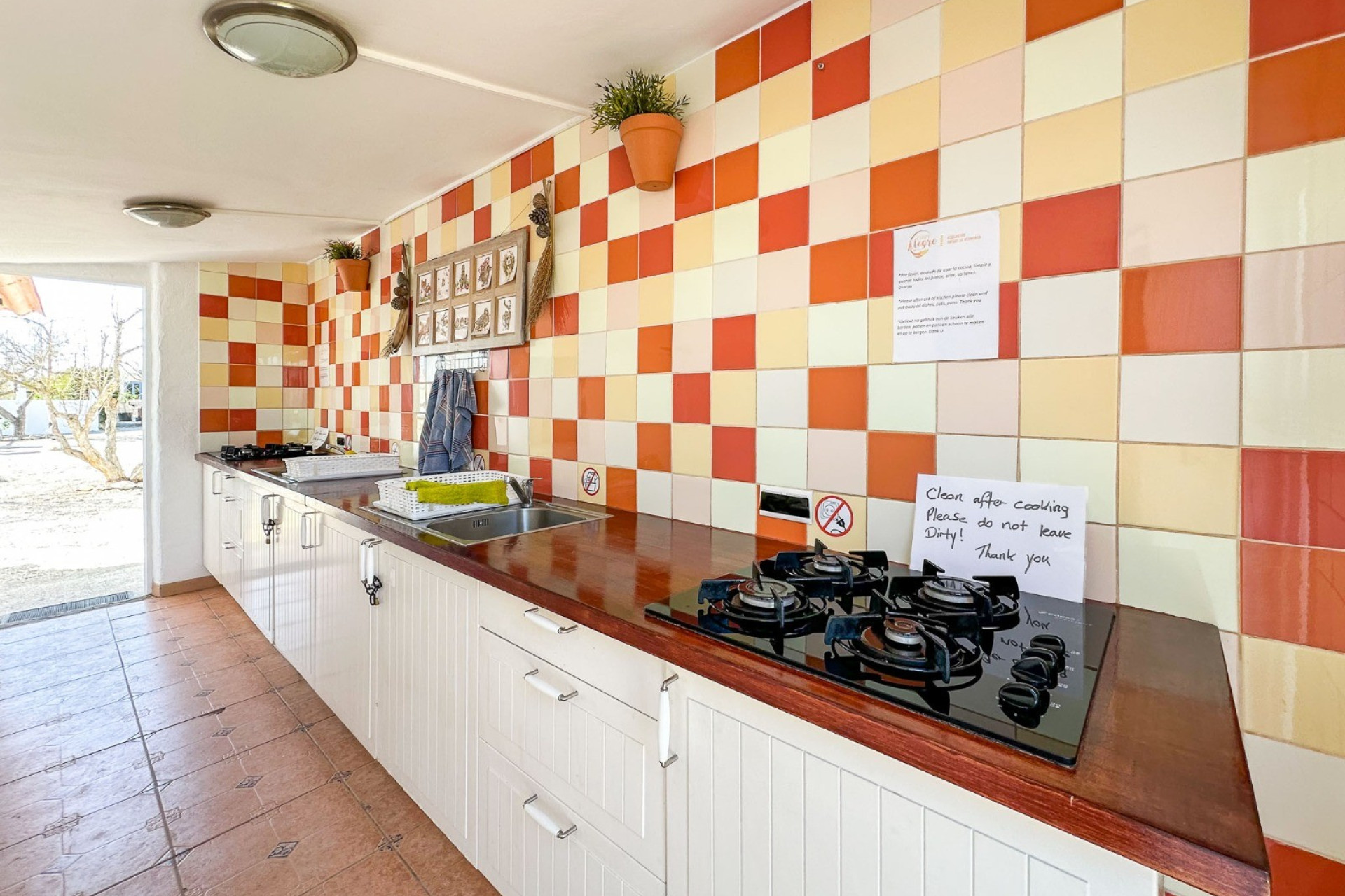 Social life thrives around the outdoor bar, complete with a pizza oven—a perfect spot for culinary exploits under the stars. For guest convenience, there is also shower block with two showers and a communal kitchen block, designed to cater to all outdoor living needs.