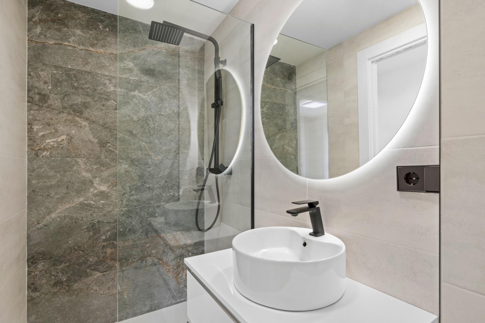 This East Facing, Four Bedroom, Renovated, Semi Detached Villa in Torre de la Horadada is located just a 3 minute walk to the beach, positioned one street behind the sea and promenade which leads you to the marina and a larger stretch of sandy coastline. Torre de la Horadada is a typically Spanish seaside town offering a variety of restaurants and café bars, while Pilar de la Horadada is just a couple of minutes’ drive away. Orihuela Costa, La Zenia Boulevard shopping centre, and several golf courses can all be reached in approximately 15 minutes. Recently renovated to a high standard with a unique and stylish design, this impressive 121m2 villa is set over two floors and even enjoys sea views. The property offers a bright open plan living space that flows seamlessly to the exterior, along with a well fitted modern kitchen. A hallway leads to the stairs for the first floor, while the ground floor also features a double bedroom with double sliding glazed doors out to the garden, and a contemporary shower room. On the first floor, there are three further double bedrooms, including a spacious master with dressing area and an en suite shower room featuring a double vanity. Bedroom four benefits from its own private terrace, and there is also an additional modern family shower room. The 45m2 private solarium is laid with artificial grass and includes a brick-built area with sink — ideal for outdoor entertaining. The garden is tiled and partly laid with artificial grass, and offers off road parking, a private swimming pool, outdoor shower, and an extensive covered kitchen/work area. Additional extras include ducted air conditioning, an irrigation system, and a store room. An exceptional, fully renovated villa in a prime coastal location, perfect for enjoying modern Mediterranean living on the Costa Blanca South.